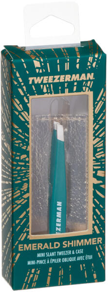 vLimitált kiadás. Tweezerman csipesz elegáns arany tokban. A Tweezerman Slant Mini csipesz smaragdzöld színben.